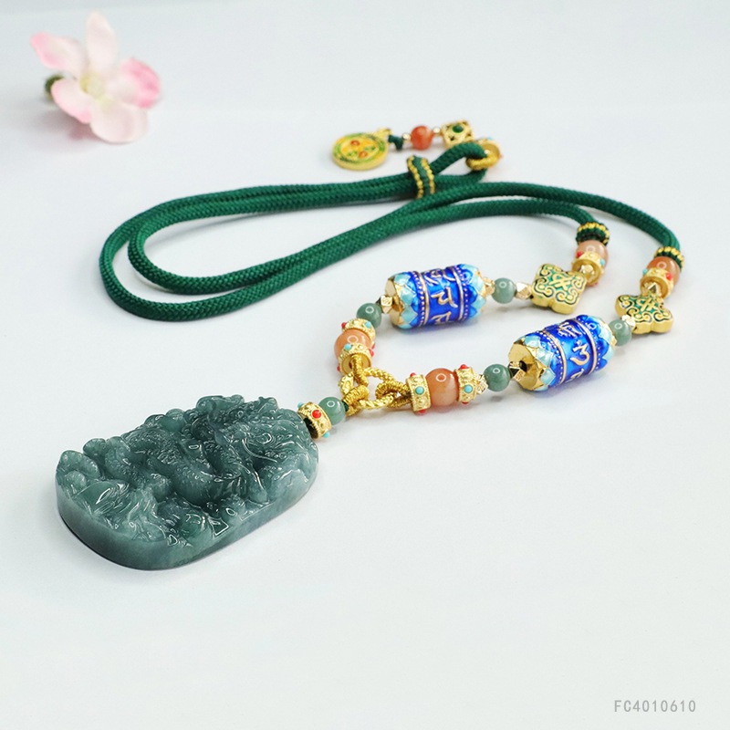 Изумрудная подвеска, инкрустация камня, солнечно-зеленое ожерелье, свитер, защитный амулет из нефрита
