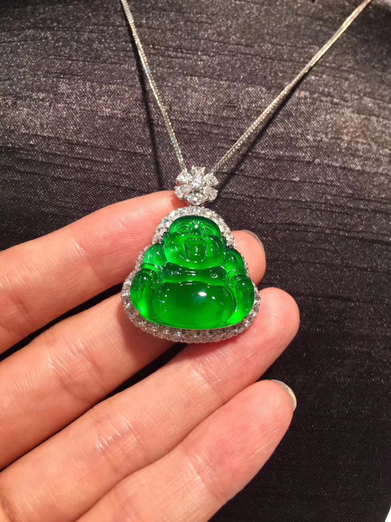Изумрудный чай Тегуаньинь, Будда, подвеска, инкрустация камня, имитация льда, золото 750 пробы