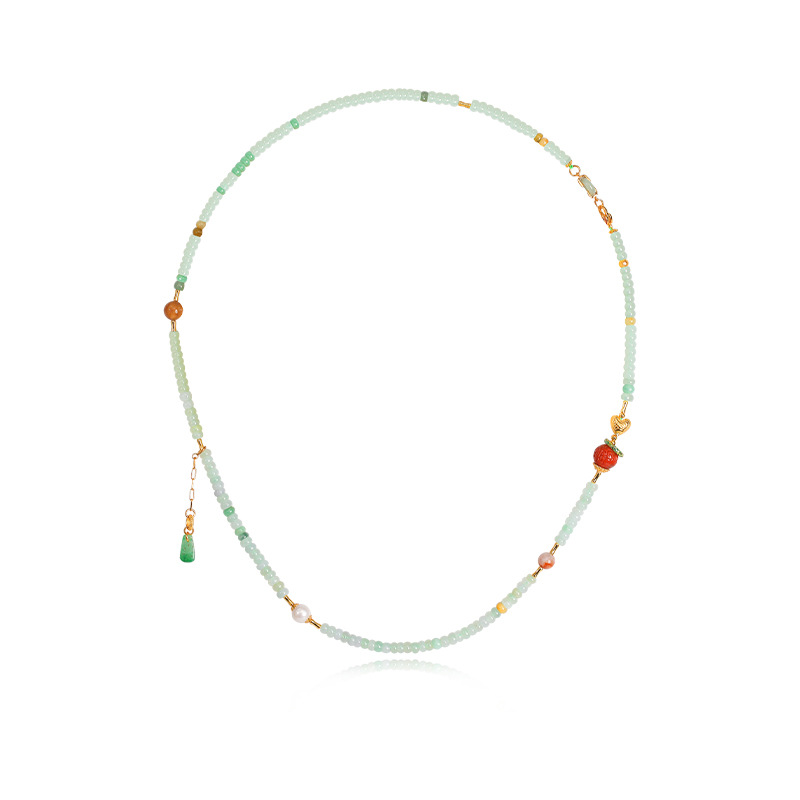 Натуральный нефрит, ожерелье, реплика из Мьянмы, эмаль, серебро 925 пробы, золото 750 пробы