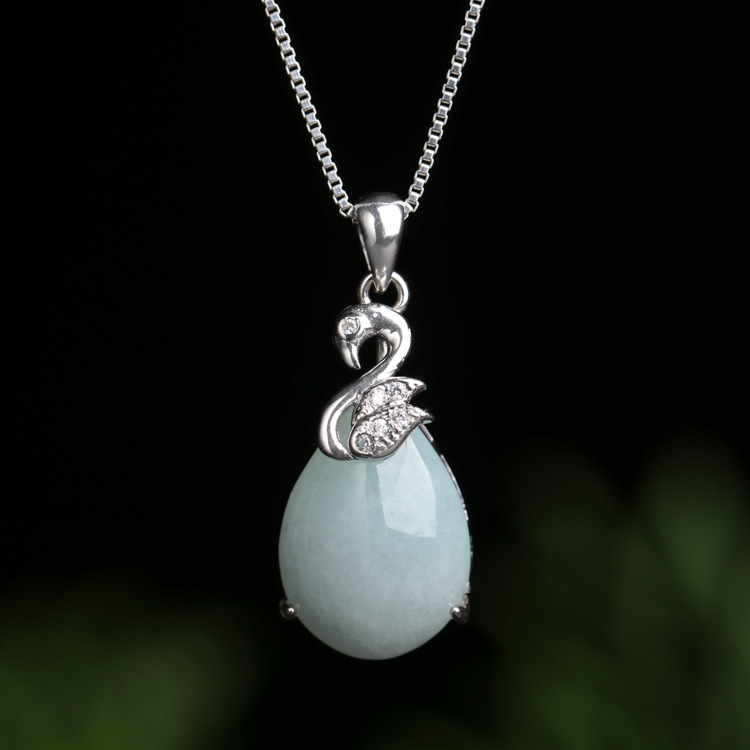 Изумрудная натуральная подвеска из Мьянмы, инкрустация камня из нефрита, лебедь, ожерелье, цепочка до ключиц, серебро 925 пробы, простой и элегантный дизайн