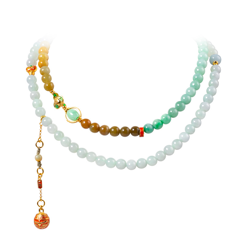 Натуральный нефрит, изумрудная подвеска, изумрудное ожерелье, четки из круглых бусин, ювелирное украшение