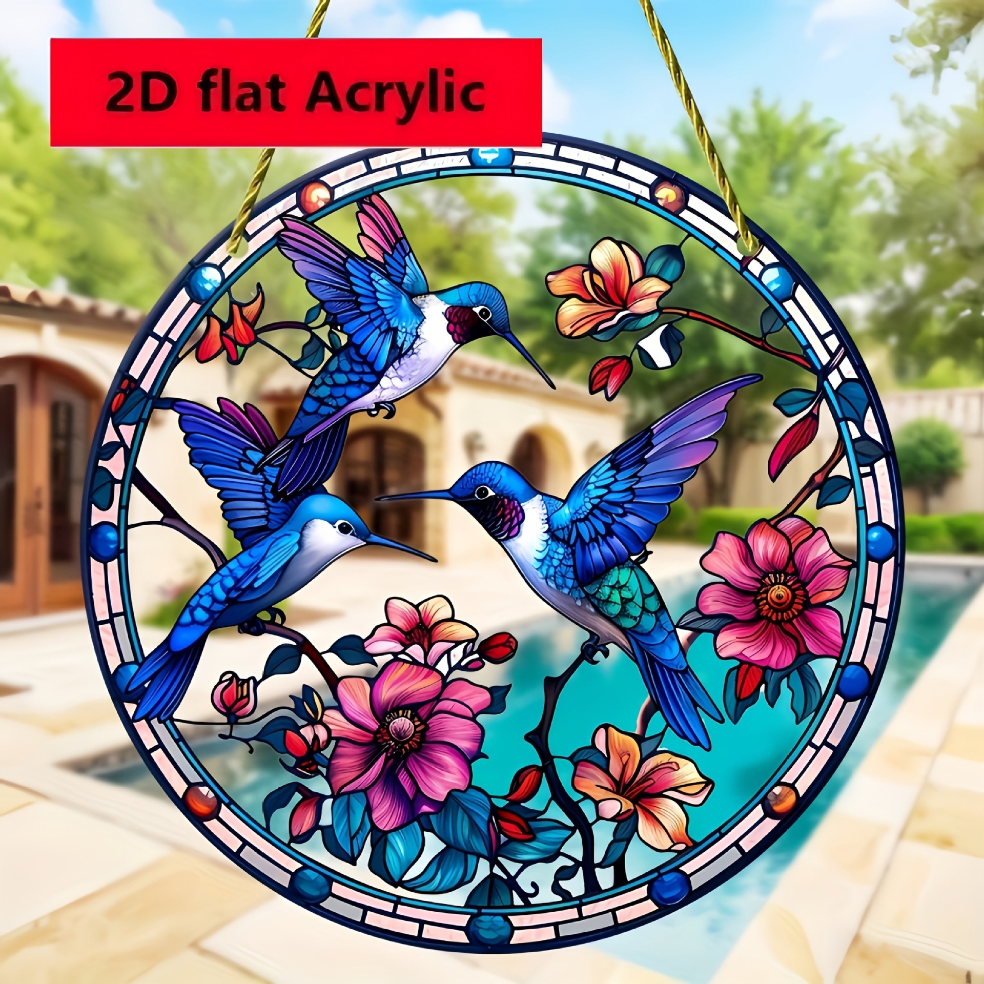2 -й плоской трусной птицы - легкая ловушка - акриловая живопись вручную искусство, яркие цветы и дизайн птиц,
