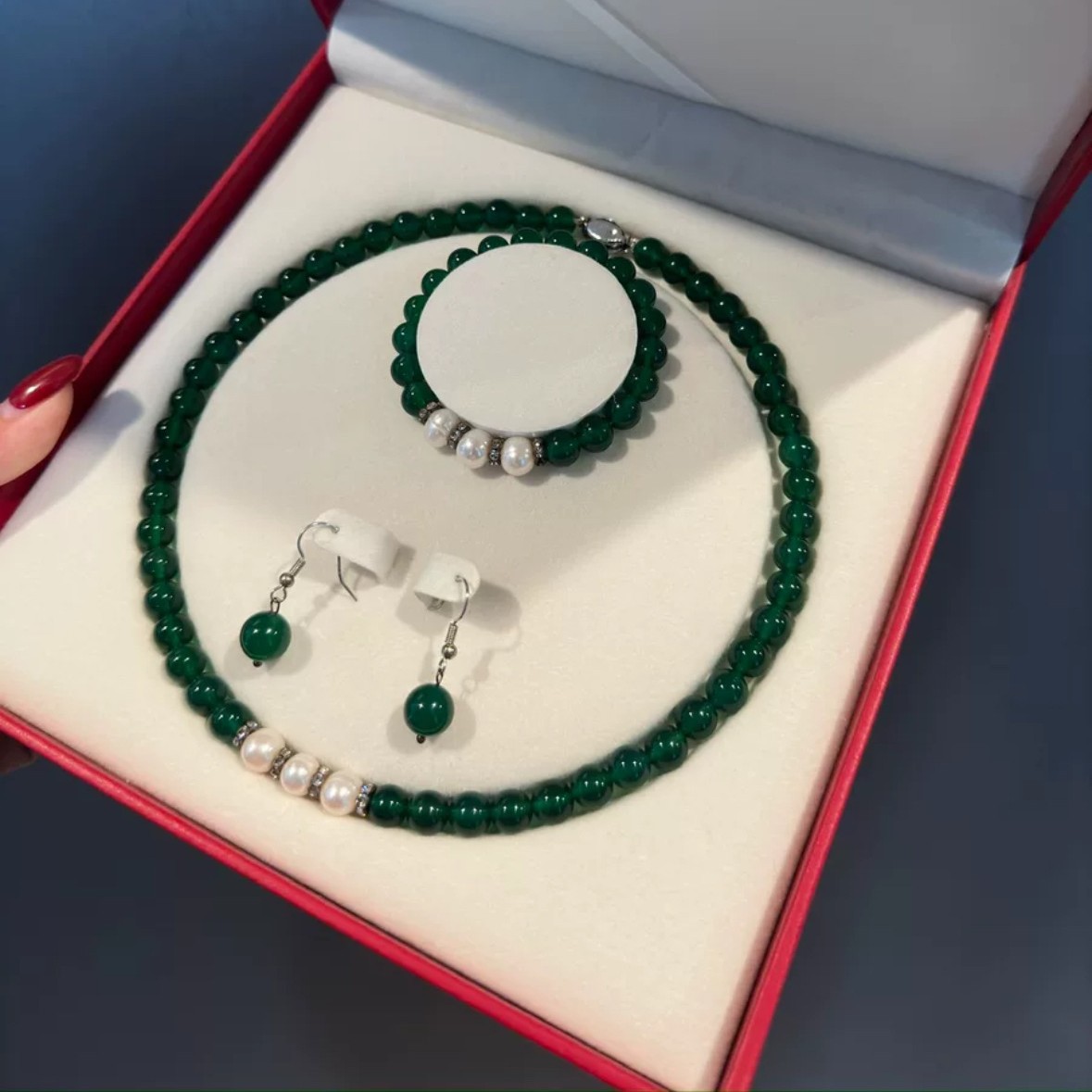Комплект, украшение, серьги, ожерелье из нефрита из жемчуга