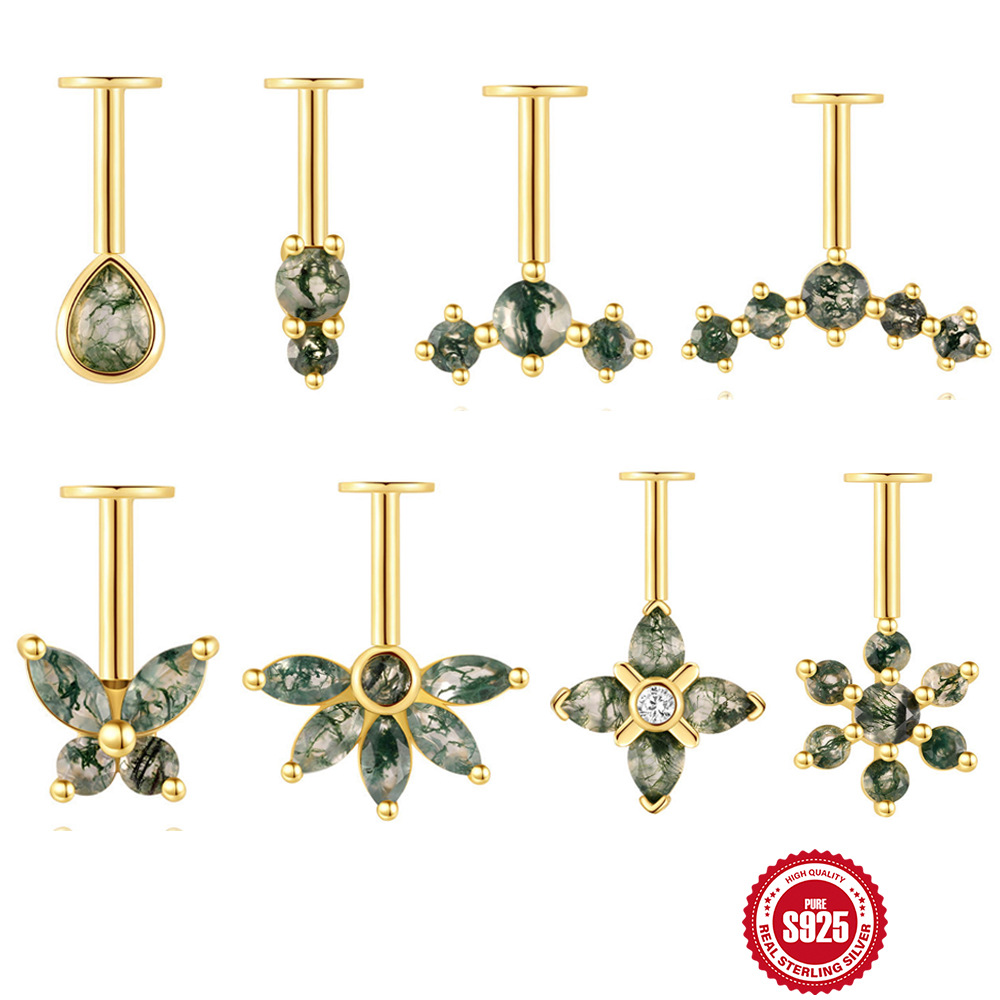 Агатовая натуральная вода, пирсинг, серебро 925 пробы, европейский стиль