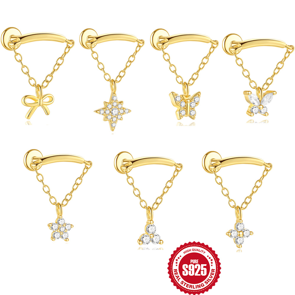 Цепь с кисточками, пирсинг, модные серьги с бантиком, серебро 925 пробы, европейский стиль