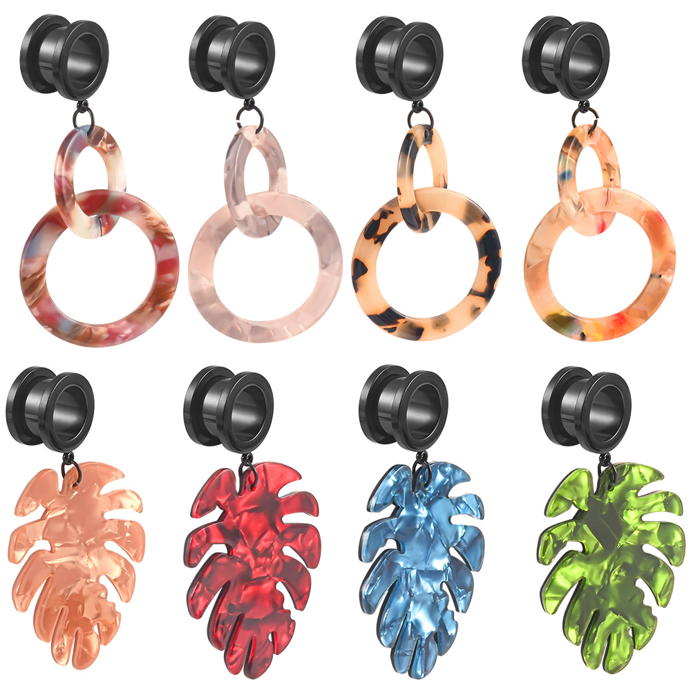 1 Проданное расширение уха из нержавеющей стали с помощью серьгов для акриловых листьев