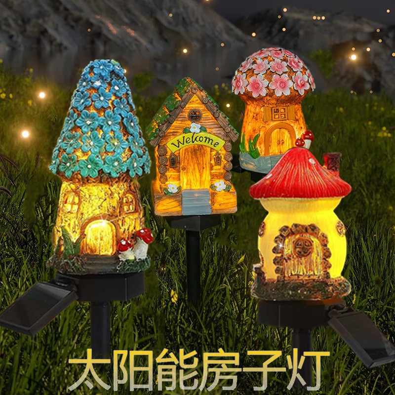 Мультяшный домик с грибочками-гвоздиками, дорожное украшение на солнечной энергии, атмосферные садовые фонари для беседки