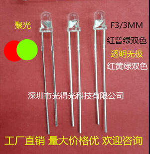 Светодиодный светодиод -эмитирующий диод F3 Красный PU зеленый двух -колор 3 мм красные и зеленые два -колорные прозрачные Wuji красный, желтый и зеленый двухсторонний.