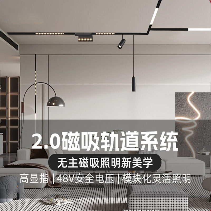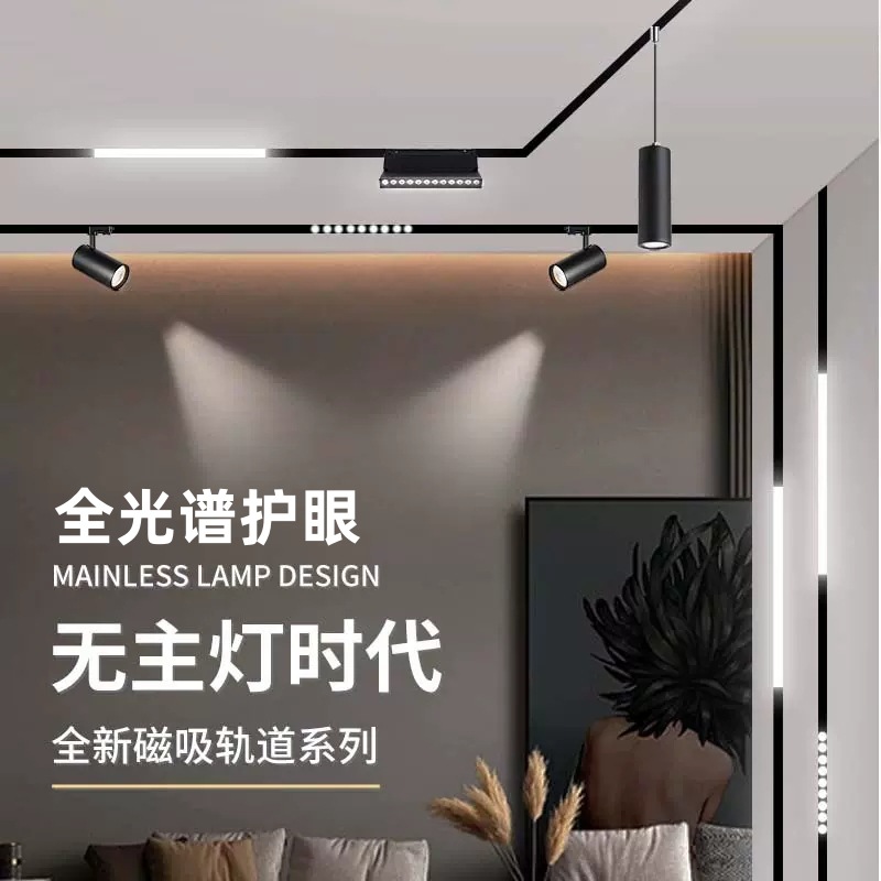 Магнитный накладной встраиваемый светильник для гостиной, лампа с рельсами, умное точечное освещение