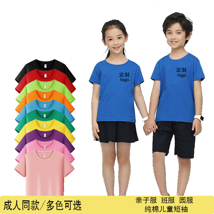 Хлопковая детская футболка с коротким рукавом, форма, однотонный приятный телу костюм, семейный стиль, с печатью вашего логотипа