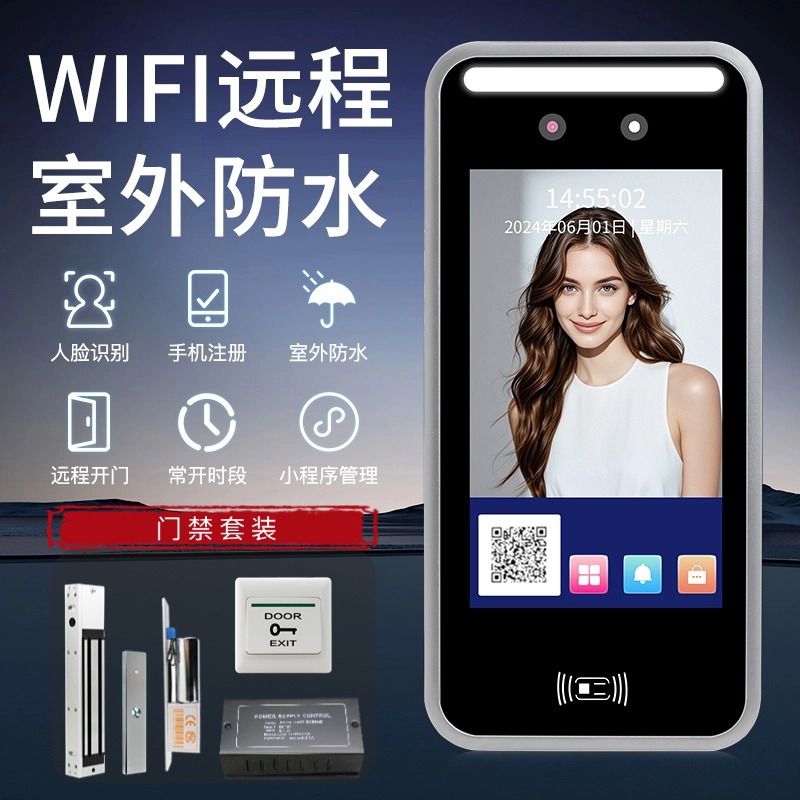 Водонепроницаемая система контроля доступа со сканированием лица. Универсальная динамическая регистрация по лицу и контроль посещаемости. Удаленная разблокировка по Wi-Fi, нормально открытая.