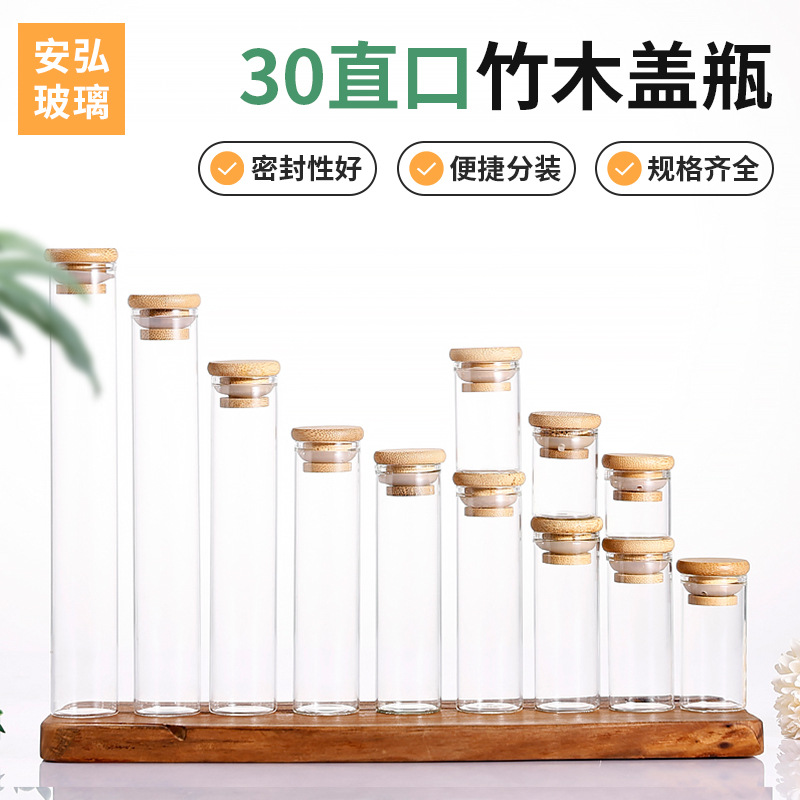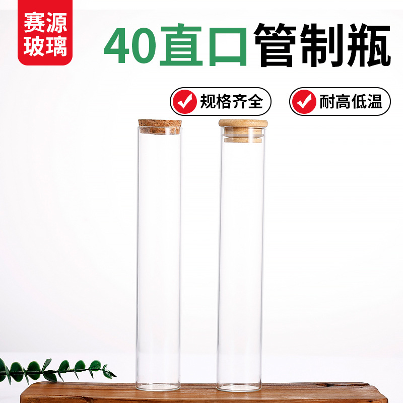 Прямоглавая стеклянная труба бутылка с высокой боросиликатной деревянной крышкой для бутылки Cordyceps.