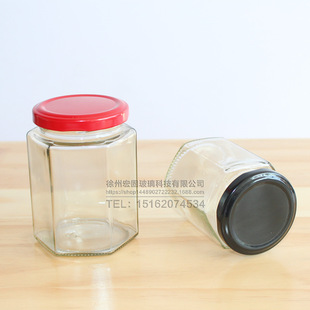 Прозрачная стеклянная бутылка шестиугольная бутылка с медовой бутылкой бутылка бутылка для бутылки бутылка бутылка бутылка запечатанная пустая бутылка для железной крышки бутылка