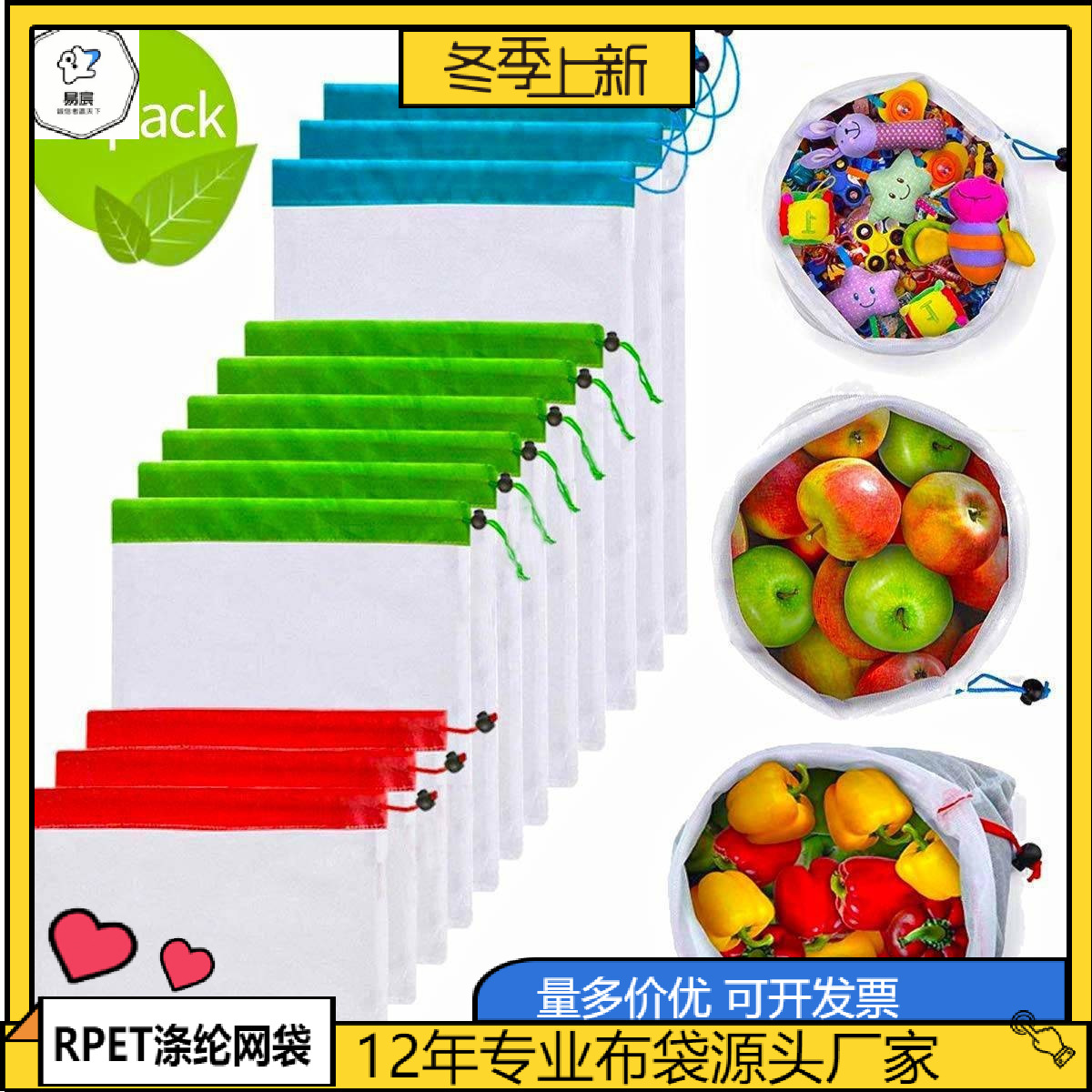 Экологичная система хранения, сетчатая сумка, мешочек, из полиэстера, на шнурках