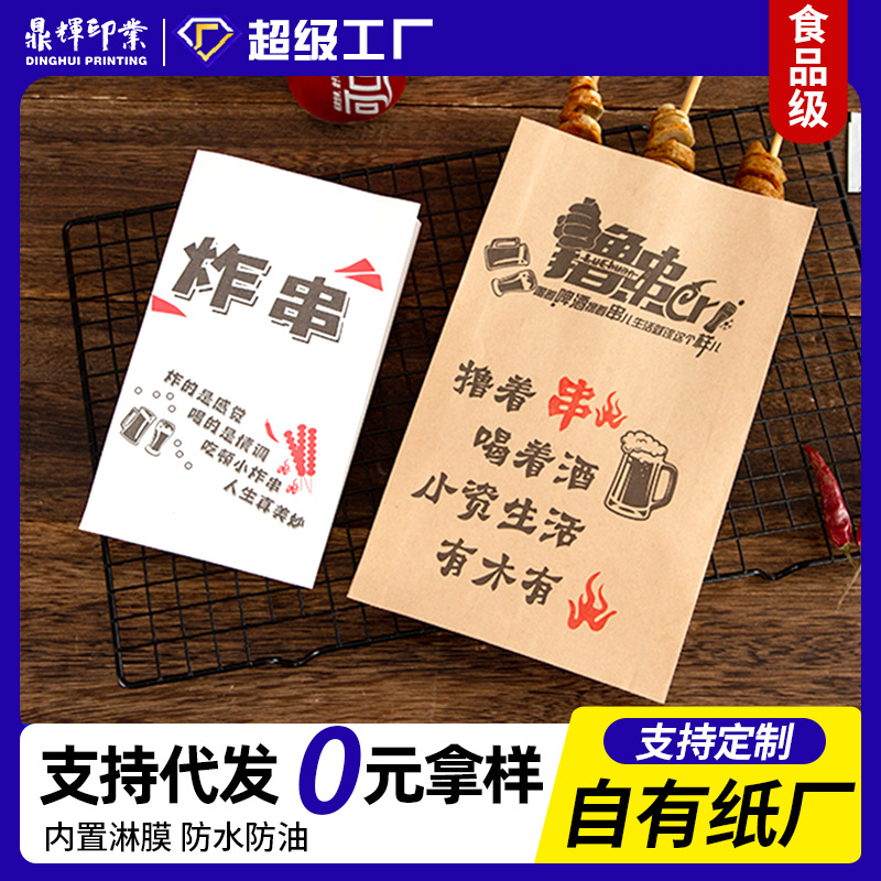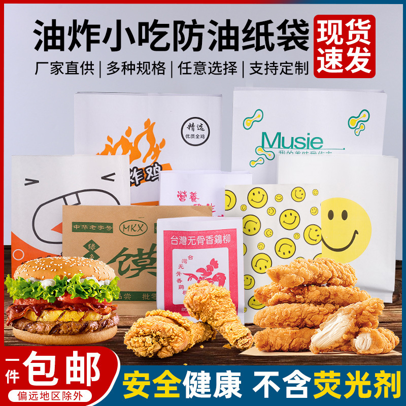 Плотские пленочных бумажных пакетов, устойчивых к нефтяным пакетам, одноразовые пищевые закусочные бумажные пакеты настраиваемые маленькие пакетные вынос упакованные утолщенные бумажные пакеты