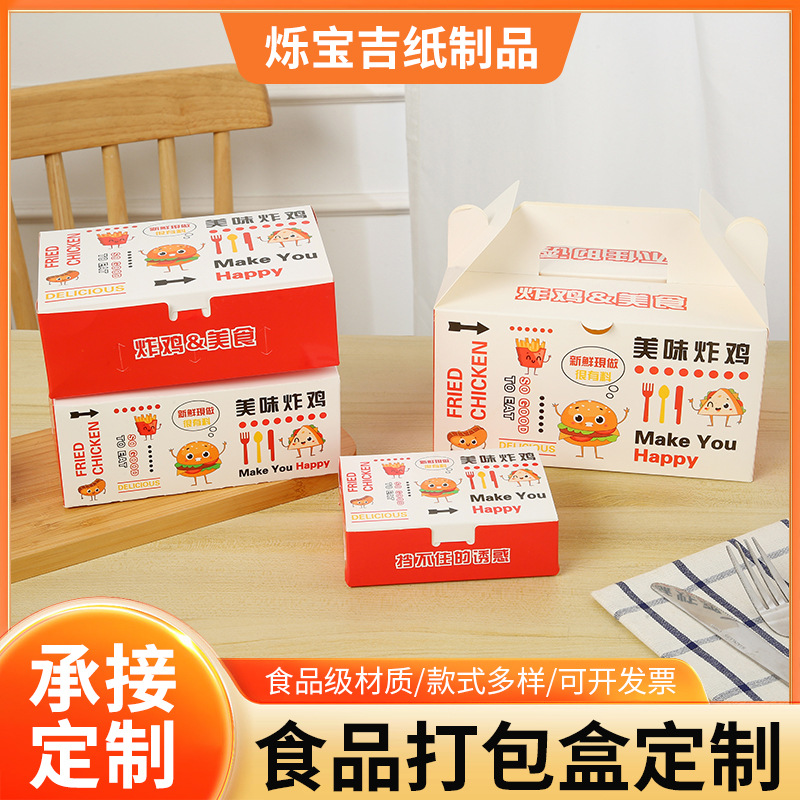 Заводская прямая поставка жареной куриной коробки одноразовая выражаемая ручная ручная бумажная коробка для быстрого питания
