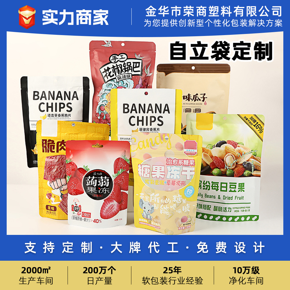 Индивидуальная упаковочная пакетная печать небольшая партия плюс печатная упаковка с закусками.