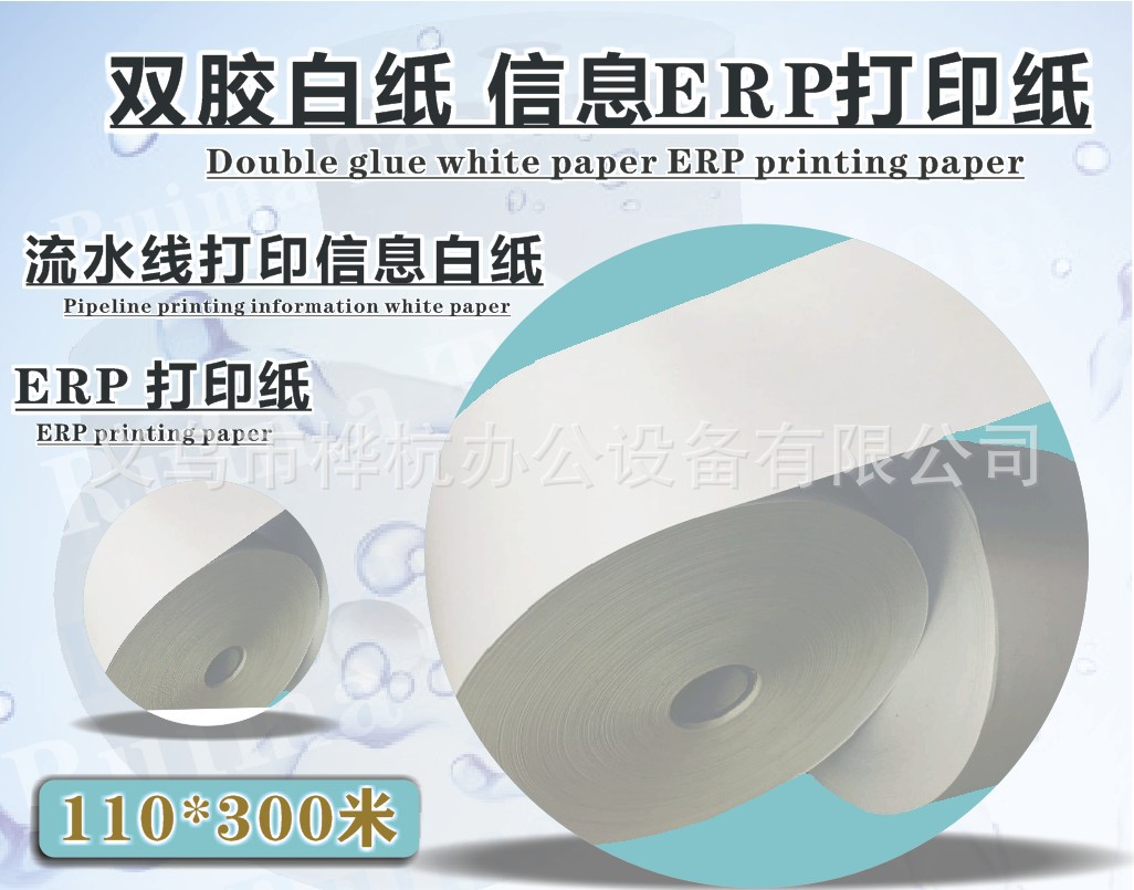 Двойной клей белая бумага 110*300 м белая бумага Информационная печать бумага ERP Производственная программная бумага Печать бумаги