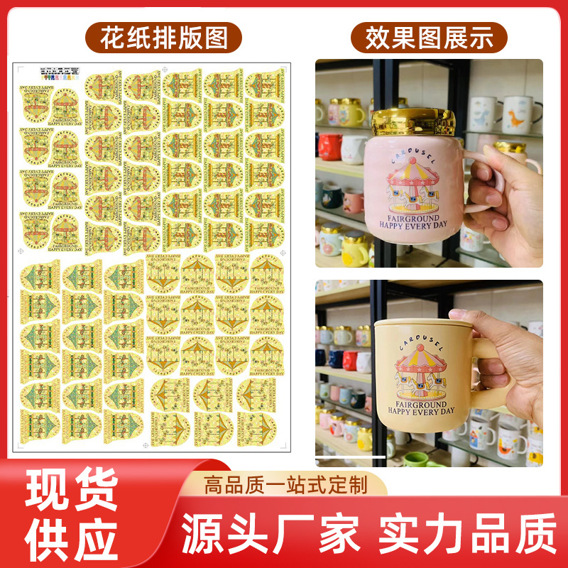 Керамическая цветочная бумага Переносная наклейка Наклейка бумаги Вертация Деревянная лошадь и детская веселая глазурь с низкой температурой с низкой температурой цветочной бумаги стекло из нержавеющей стали может разорвать пленку