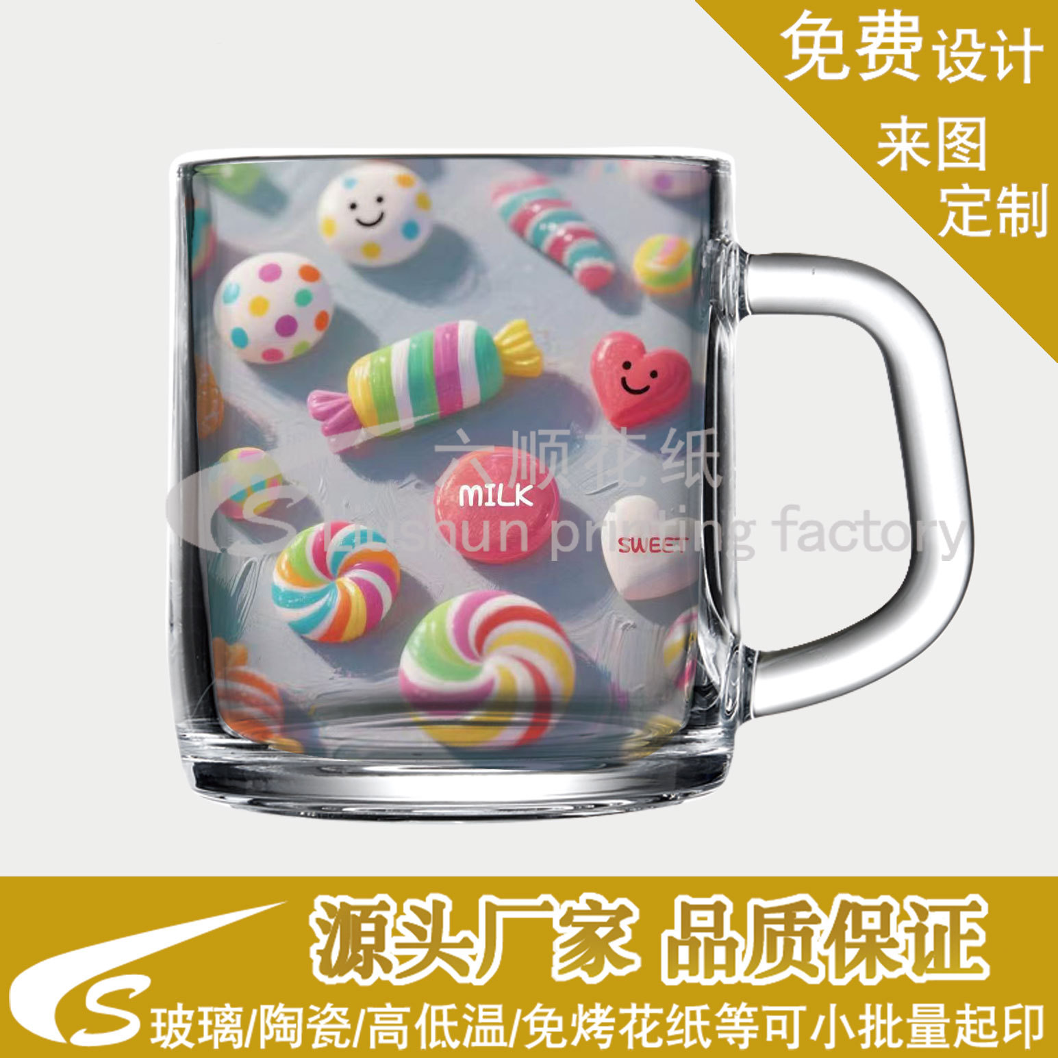 Стеклянная водяная знак оптом высокая и низкая температура двойная цветочная бумага индивидуальная карикатура