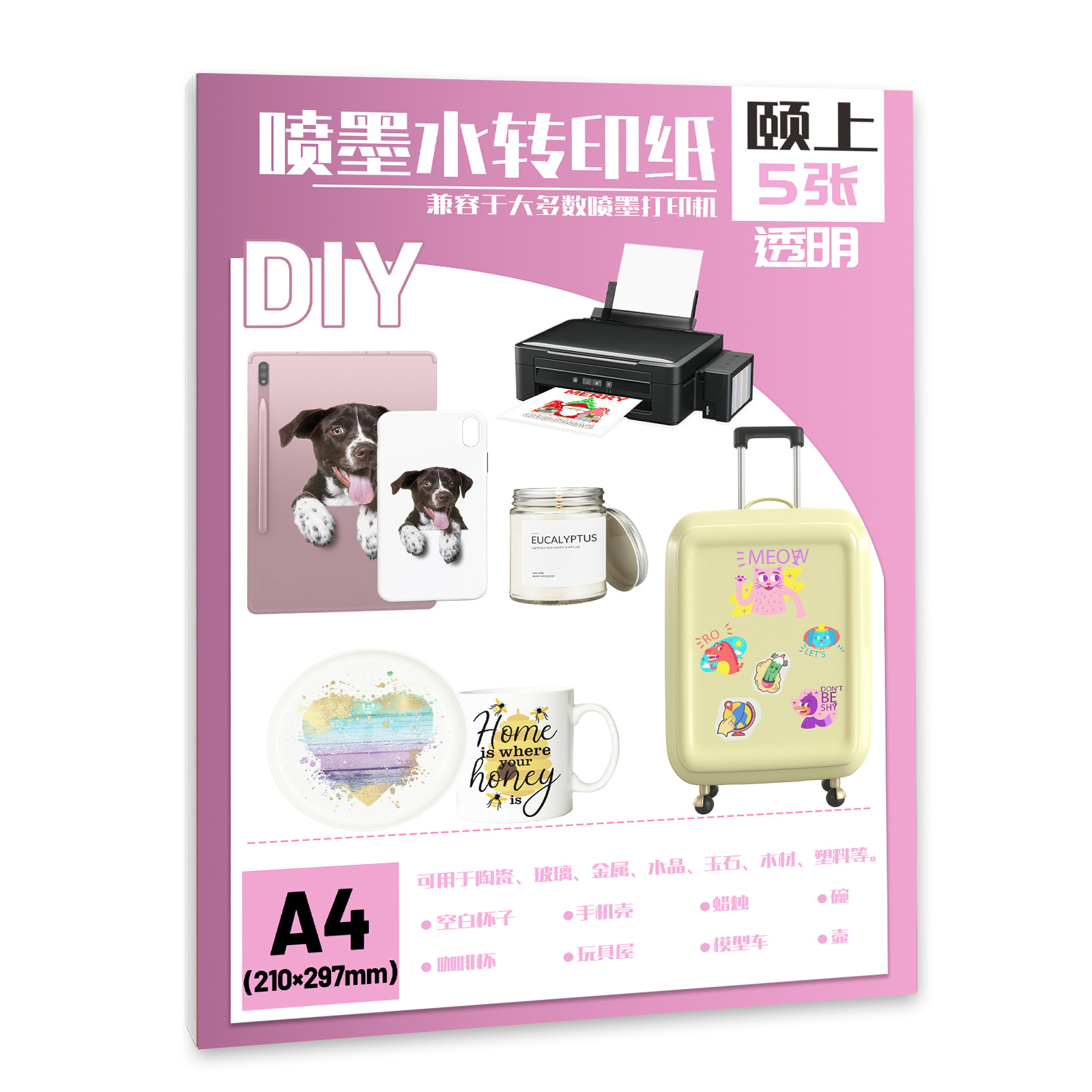 A4 Ярко -белая прозрачная бумага для переноса воды без выпечки струйной лазерной печать