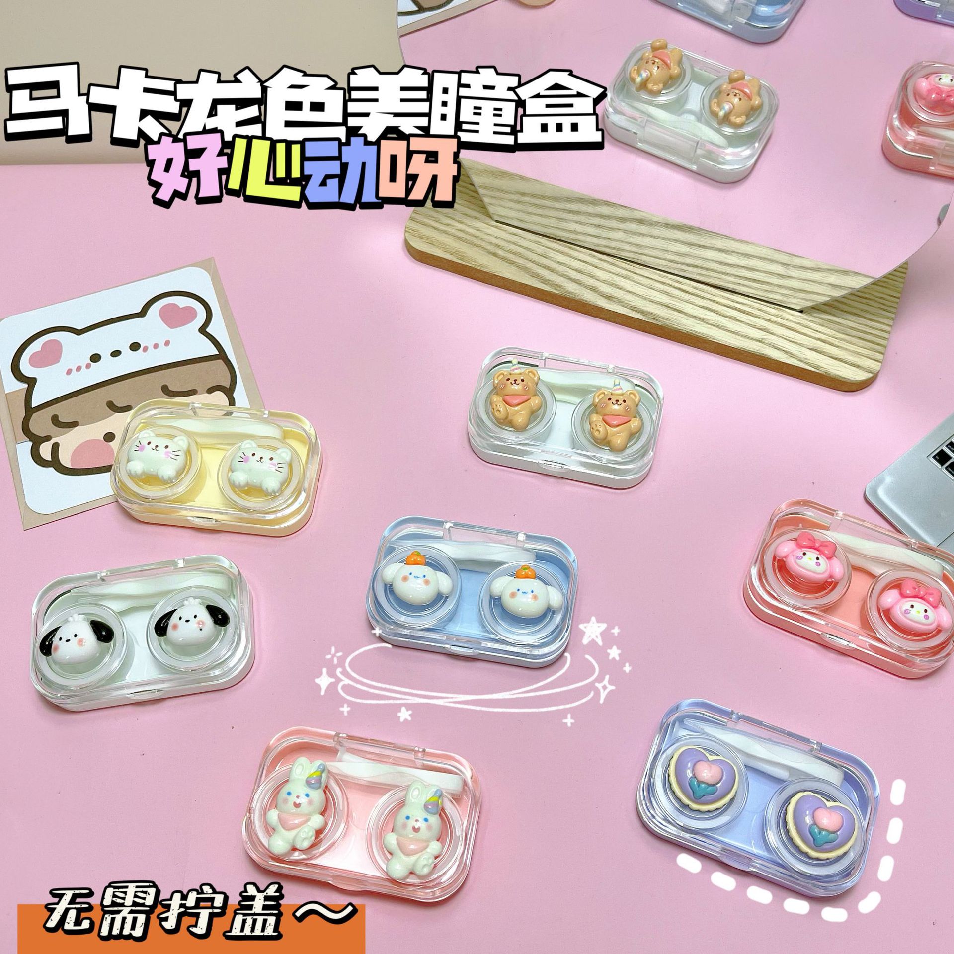Сплошная контактная коробка для контактной линзы красивая коробка зрачка маленькая двойная двойная связь с партнерской коробкой для кормления пластиковая PP простой цвет конфеты цвет