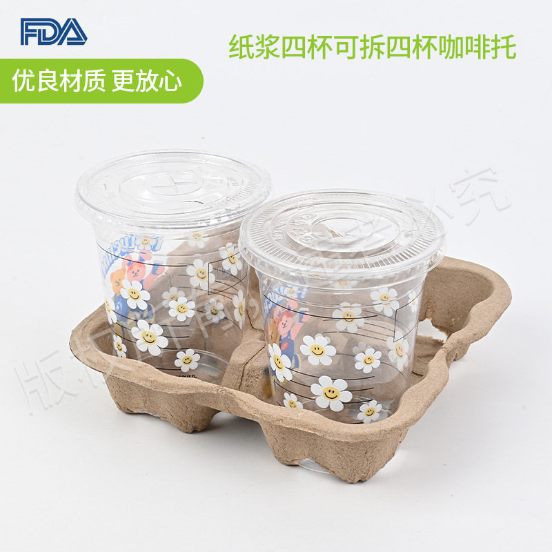 Четыре чашки мякоть можно отделить четыре чашки кофе-держателя одноразовый вынос с фиксированным упакованным молоком, чайная чашка, оптовая чашка, оптом