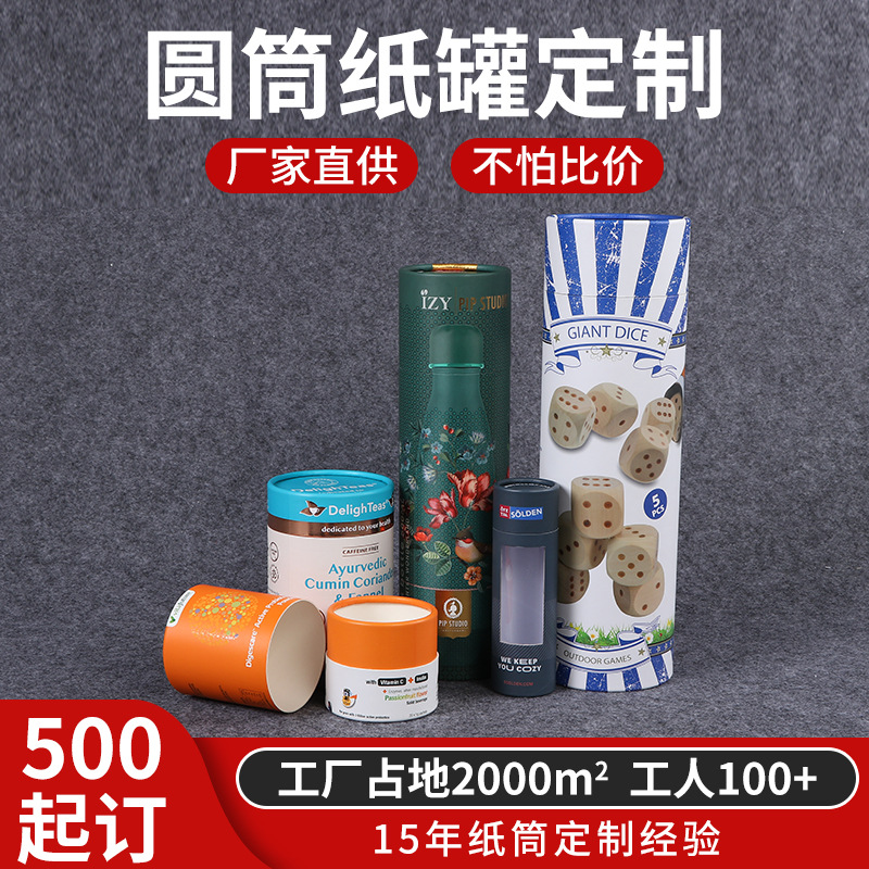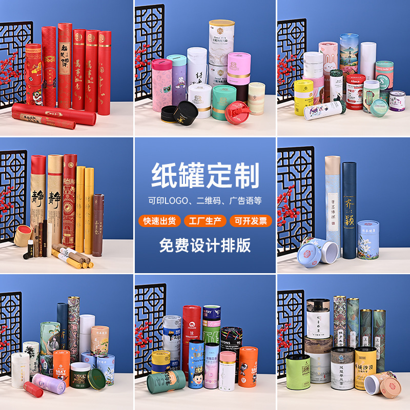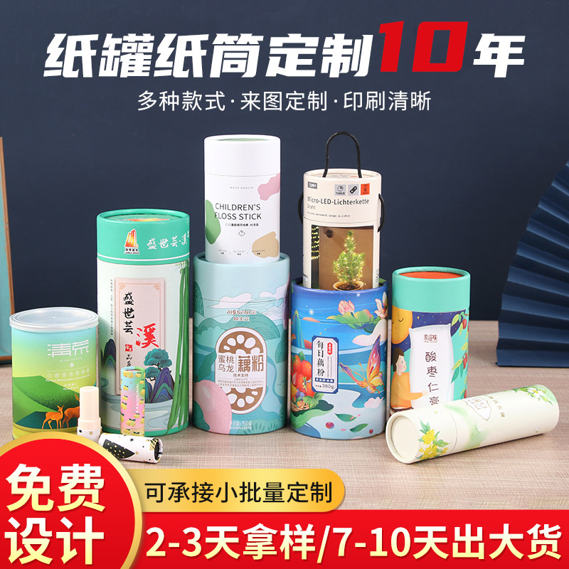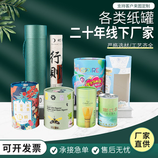 Индивидуальная бумажная банка логотип круглый пищевый чай -коробка с карт -бумагой Небеса и Земля Крышка бумажная трубка куплет