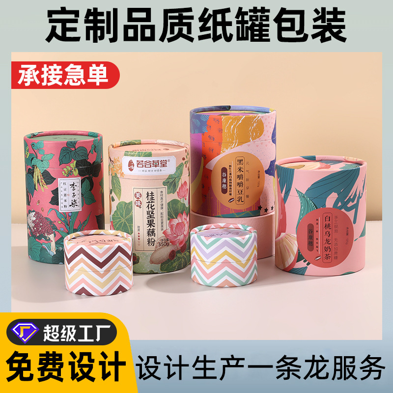 Индивидуальная бумажная банка чая для кожи, чайная упаковка с закусками с закусочной круглой бумажной труб