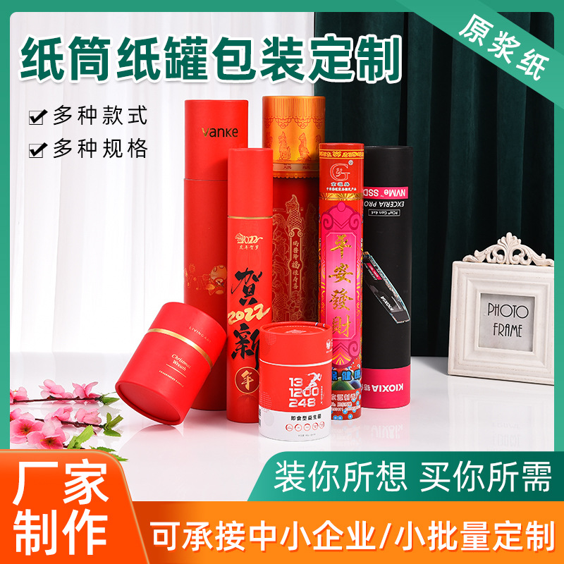Весенний фестиваль куплет Пара бумажного цилиндра чайная бумага для кожи для кожи бумаги из бумажных цилиндров Упаковочные коробки, покрывающие круглую бумагу