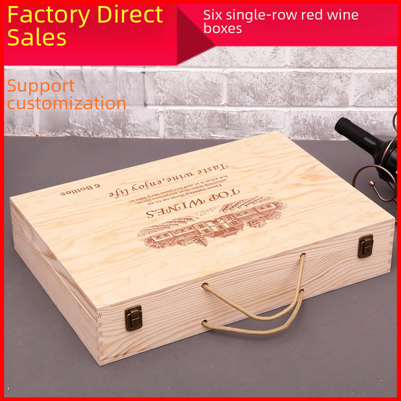 Красная винная коробка шесть красных вин деревянная коробка красная винная коробка 6 упаковочная подарочная коробка вина вина красная вина деревянная коробка