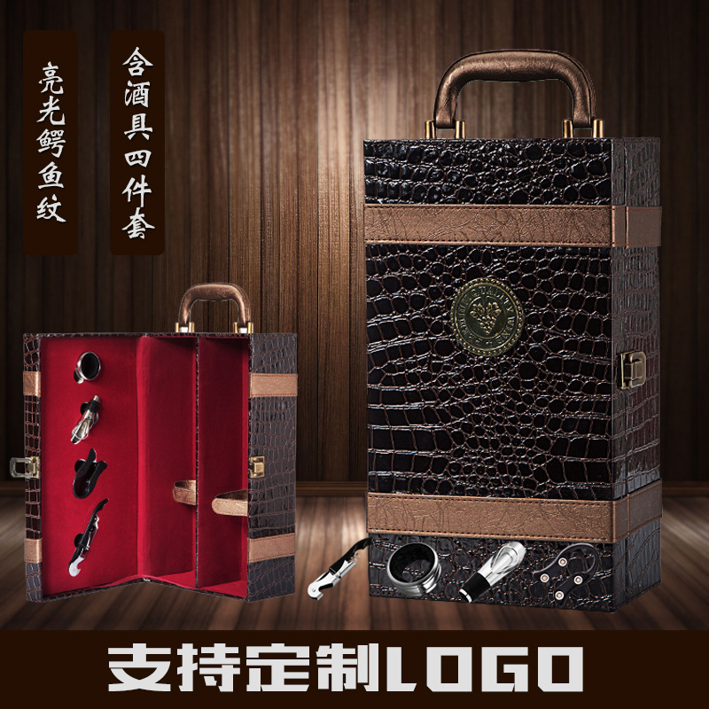 Уничтоженная крокодиловая картина двойная подарочная коробка+вина и вино черная кожаная коробка можно напечатать с логотипом с сетью красного вина