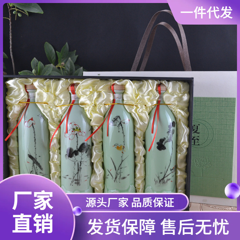 1 кот из синего фарфорового весны, лето, осенний и зимний искусство керамическая бутылка для вина с подарочной коробкой для винного танка Jingdezhen