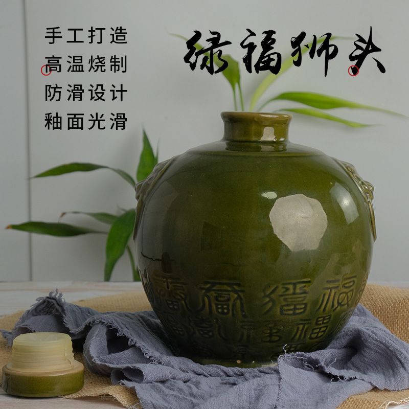 Yixing Оптовая керамика зеленое благословение льва головы 5 фунтов головы льва пустая бутылка вина белое вино