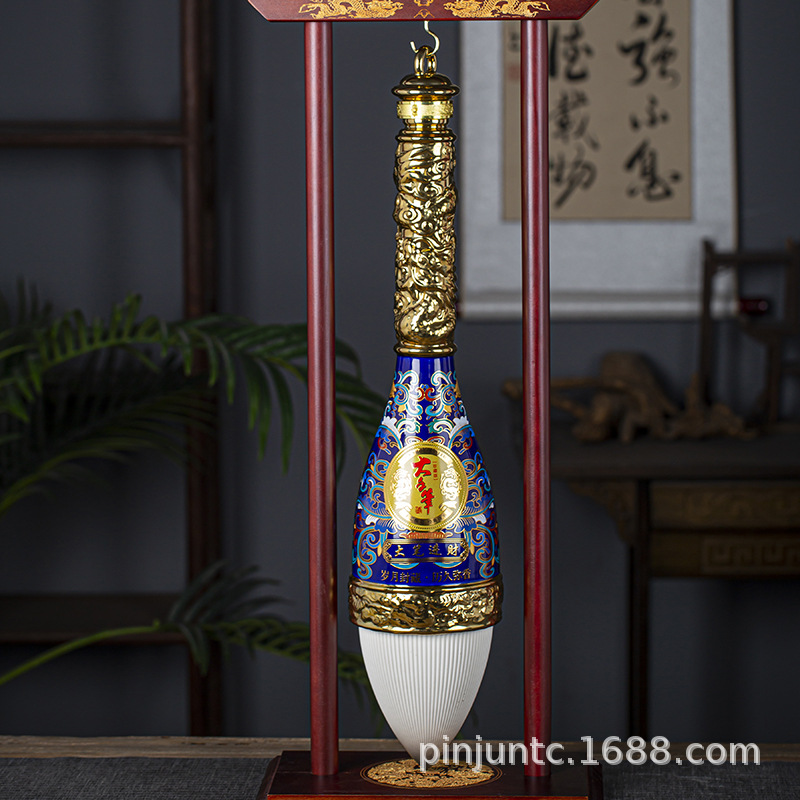 Джингджэнь керамический пузырьковый винный алтарь 10 фунтов в Qingming Shanghe Picture Liquor Bottle десять фунтов винного алтаря с деревянной рамой