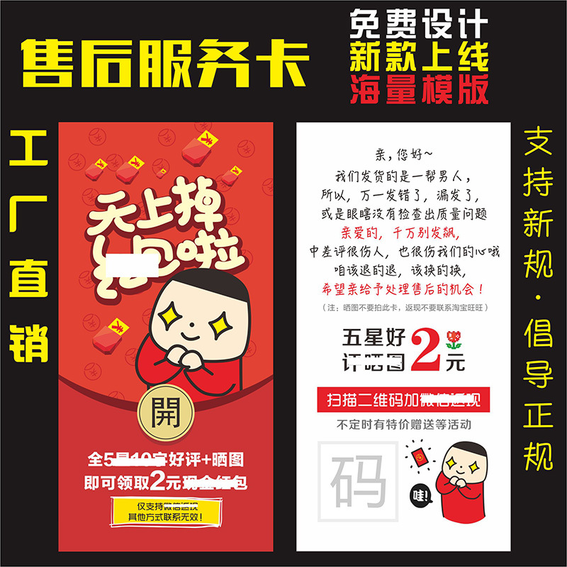 Xijia spot duoduo Хорошая обзорная карта оптом в магазине Dour Store After-Sales Card Taobao Five Star Posting Propement Return Red Envelope Good Review производитель