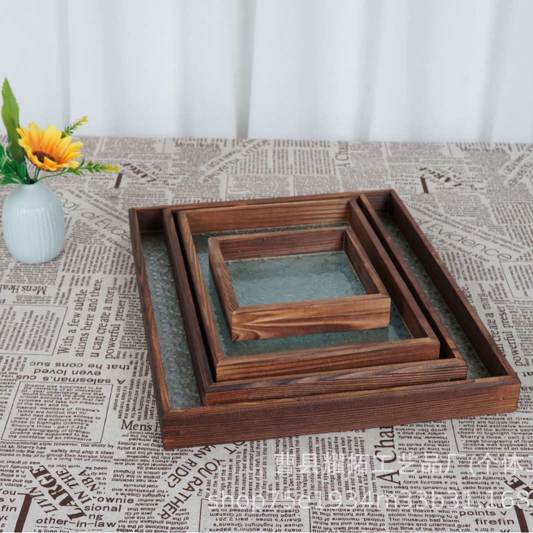 Бегония стеклянный поднос ретро -чайный поднос с твердым лесом