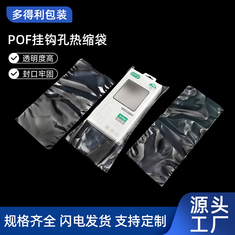 Dongguan Оптовая POF -крючок отверстие для тепла тепло сокращение мешки с несколькими спецификациями ежедневные принадлежности цветная коробка прозрачная упаковка сумка с сокращением упаковки