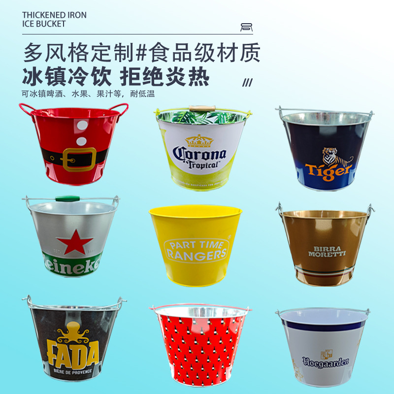 Жестяное ведро для льда 5 л, круглое среднее портативное железное ведро, ведро для попкорна, ведро для льда для пива, портативное металлическое ведро