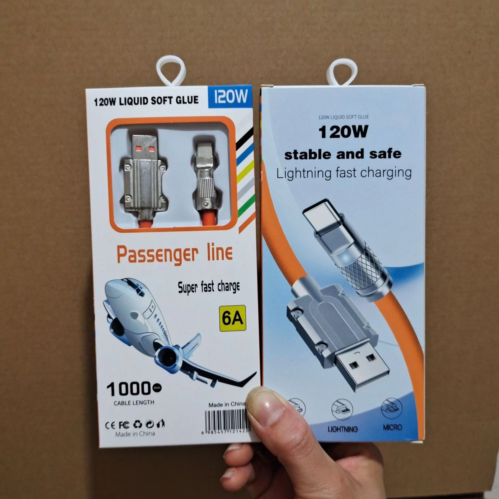 6A Машина Клиент-Линия Линия цинк сплав с сплавом кабель Carton Carton Apple Android Type-C Зарядка кабеля Прозрачная цветовая коробка окна упаковка