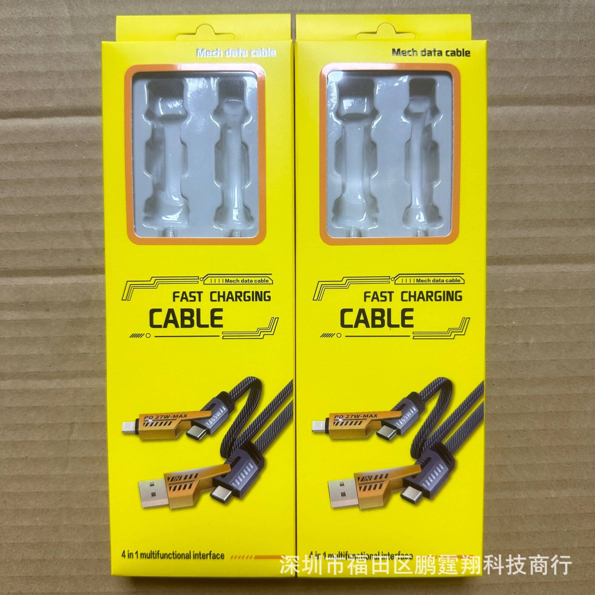 4IN1 зарядный кабель цветная коробка кожа быстрая зарядка два-в-два меха желтый кабель для передачи данных блистерная УФ-картонная упаковка для заказа головка карты