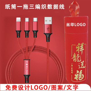 Зодиак Дракон перетаскивает три кабеля данных Синглонг дайте благословение бумажную трубку Sanhelong One Зарядка кабель небольшой подарок логотип