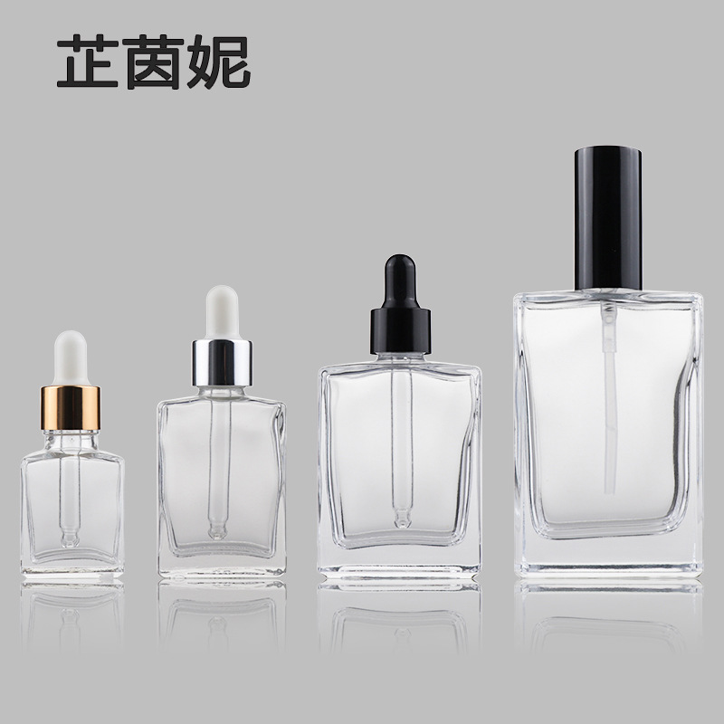 Прозрачная квадратная стеклянная пипетка, масло, бутылка, духи, распылитель, 15 мл, 30 мл, 50 мл, 100 мл