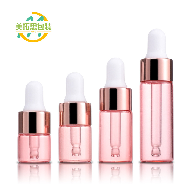 Пипетка с розой в составе, розовая бутылочка для эфирных масел, духи, сыворотка, стеклянная бутылка, 1 мл, 2 мл, 3 мл, 5 мл, розовое золото, пробник