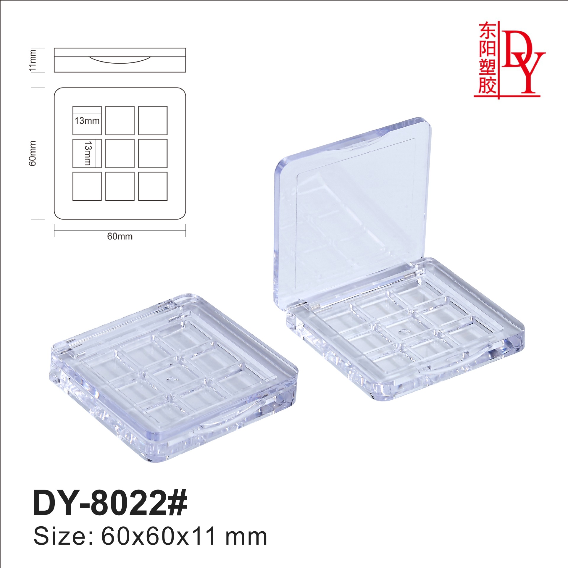 Квадратная тени для век, прозрачные пластиковые румяна, косметическая база под макияж, косметичка