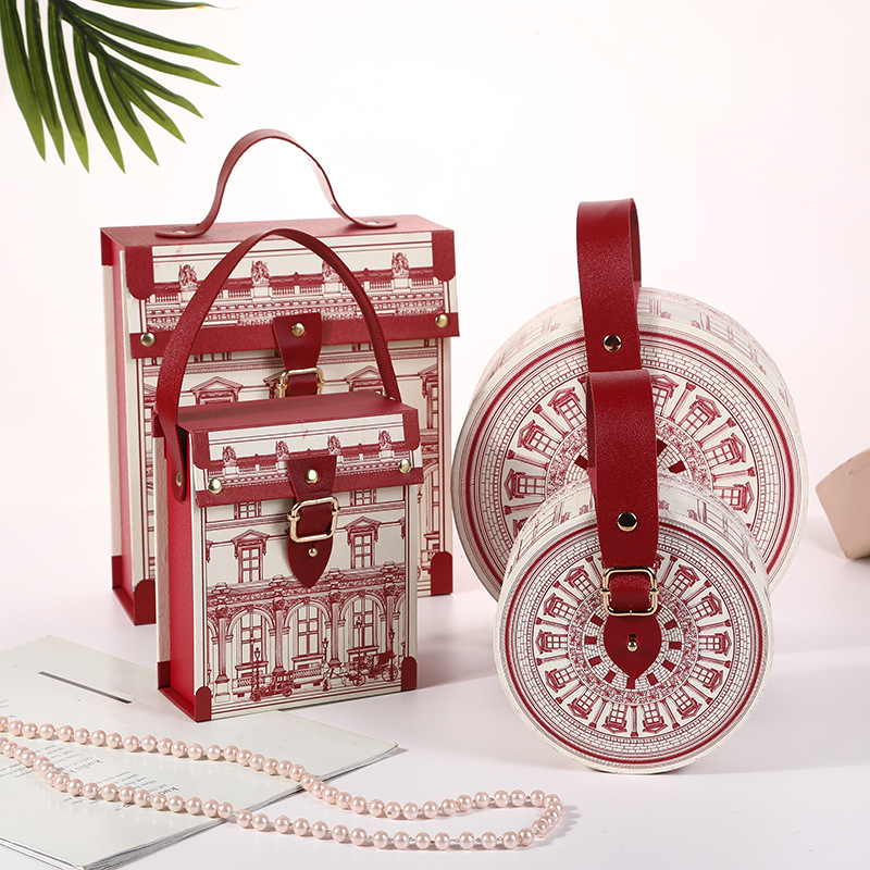 Красная круглая сумка, замок, подарочная коробка, европейский стиль, подарок на день рождения