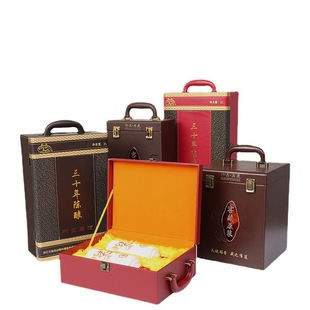 Красная коробка для вина с шестью пакетами кожаная коробка вина с шестью упаковочными упаковочными коробками Red Wine Double-Pack Wine Box Red Wine Gift Box