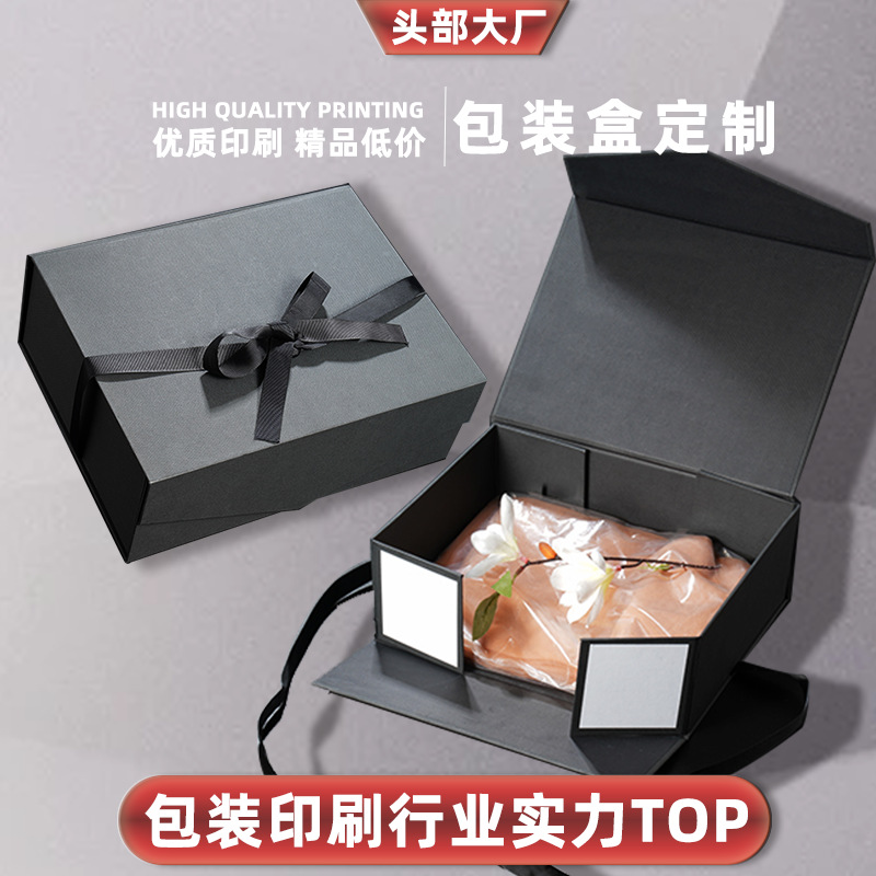 Прямоугольная коробка, лента, черная сумка, подарок на день рождения, с печатью вашего логотипа