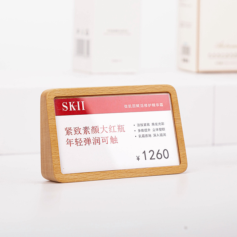 В магазине продукт дисплей бренд с твердым деревом.