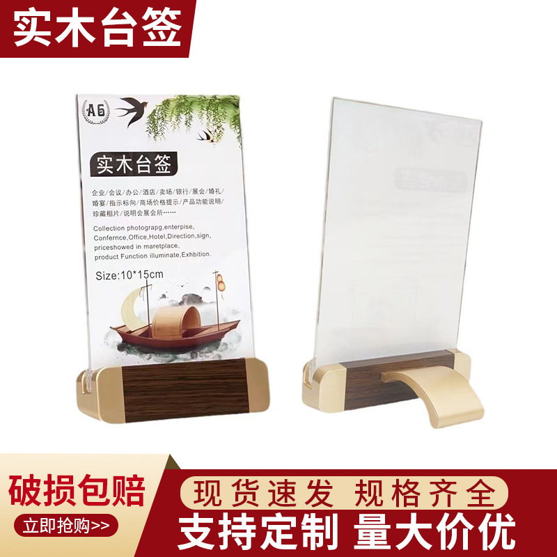 Акриловая кристаллическая прозрачная стойка Деревянная карта настольной карты A4 Дисплей карта A5 Двусторонняя табличная карта списка цен на карты таблицы